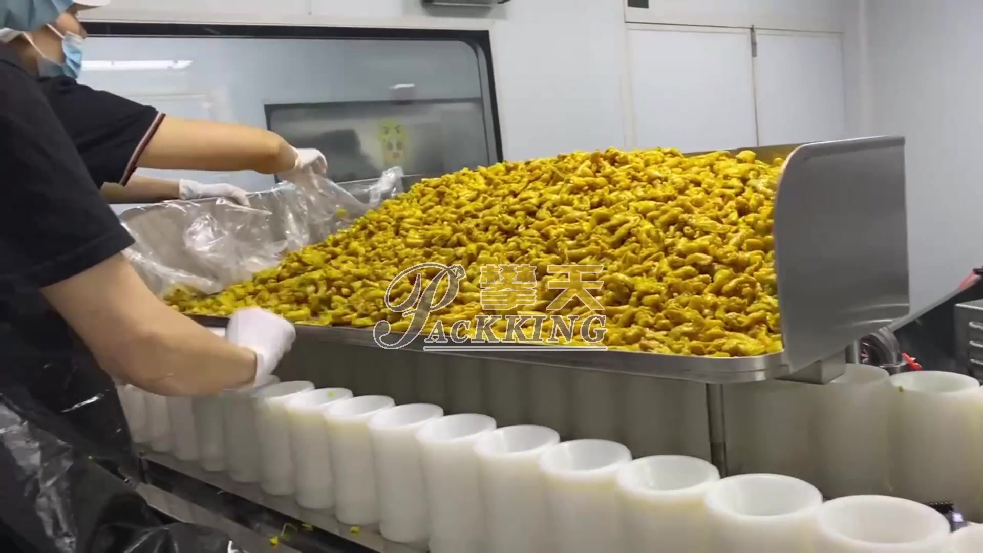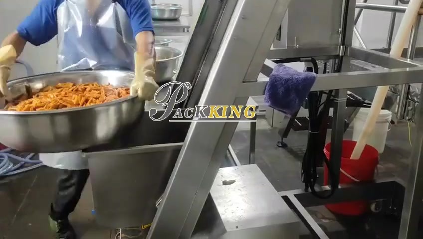 Vacuum premade packer and 14 head screw weigher on cooked chicken wings project
